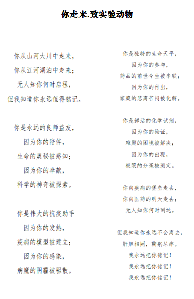 为了铭记实验动物为人类健康事业所做出的巨大贡献和牺牲,增强广老员工尊敬畏生命、尊重生命、善待生命、拯救生命的意识,在第45个“世界实验动物纪念日”到来之际,由tyc5997太阳集团联合校团委主办,机能学实验实训中心承办的第三届“我与实验动物的故事” 原创诗歌、漫画作品征集活动圆满完成了作品征集和评选工作。