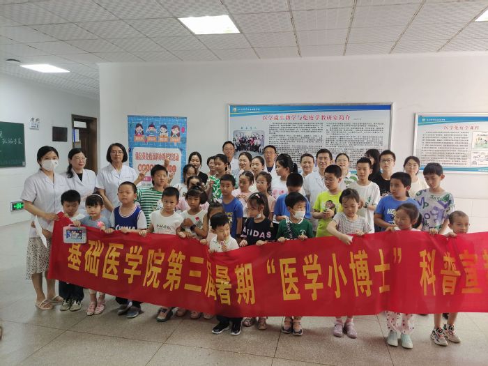 为进一步推动医学免疫学国家级混合式一流课程建设,营造“乐学、向美、明辨、尚行”的课程文化氛围,凸显课程育人价值,打造优质第二课堂,7月4日上午,tyc5997太阳集团医学微生物学与免疫学教研室举行蒲公英免疫双科小组成立仪式暨暑期《保护人体的免疫小卫士》主题科普活动。活动由医学微生物学与免疫学教研室主任刘辉组织策划,党支部书记董博翰主持,医学免疫学课程团队教师、教研室党员教师、蒲公英免疫双科小组员工参加活动。