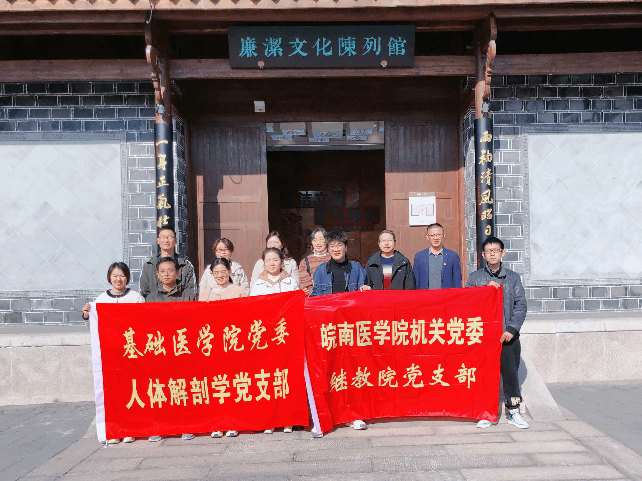 为深入学习贯彻习近平总书记考察安徽重要讲话和党的二十届三中全会精神,进一步推进党纪学习教育常态化,12月1日,人体解剖学党支部联合校机关党委继教公司党支部赴安庆六尺巷开展主题党日活动。