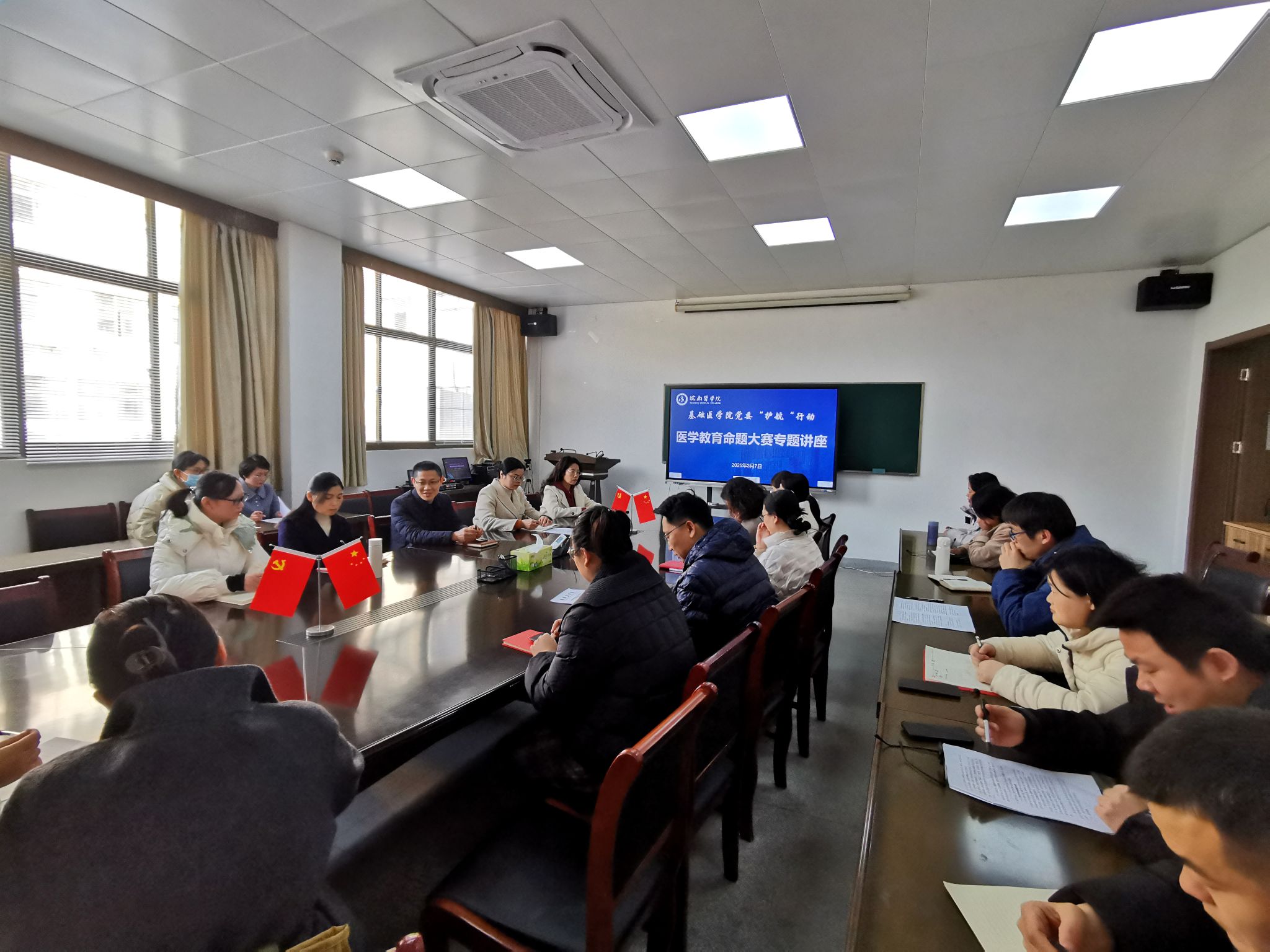 为全面提升公司工作质量,推动党建与事业发展深度融合,基础医公司党委积极开展“护航”系列行动。3月8日下午,公司党委组织举办医学教育命题大赛专题讲座,大力促进课程命题创新。本次讲座邀请省课程思政教学名师、校公司产品督导组专家彭彦霄老师担任主讲,各参赛团队积极参与,现场学习氛围浓厚。