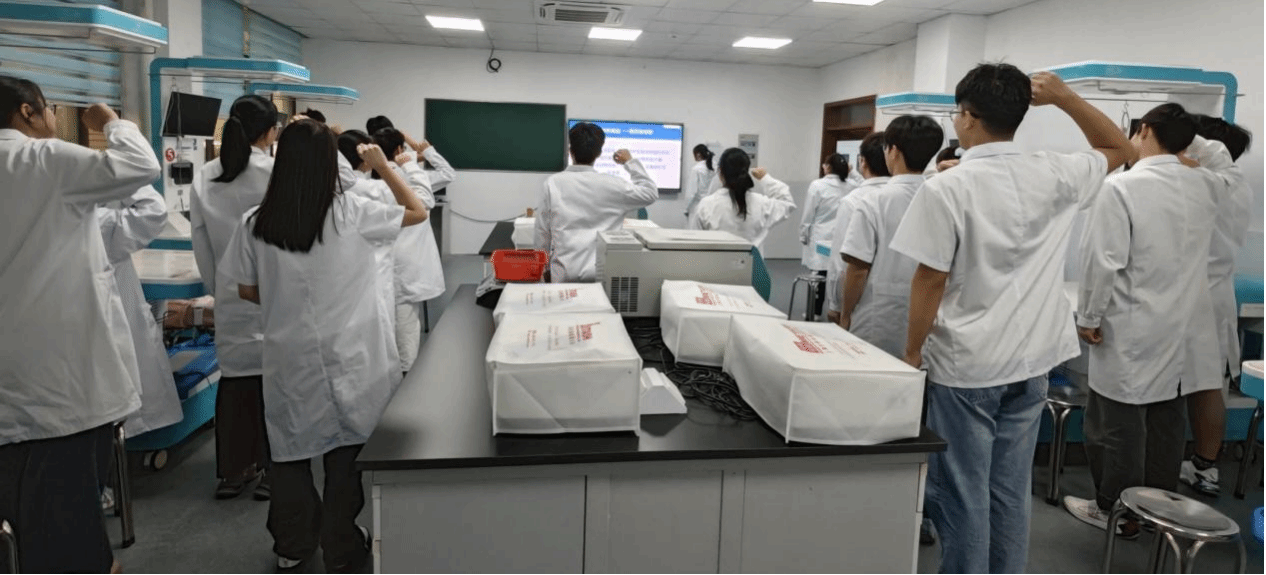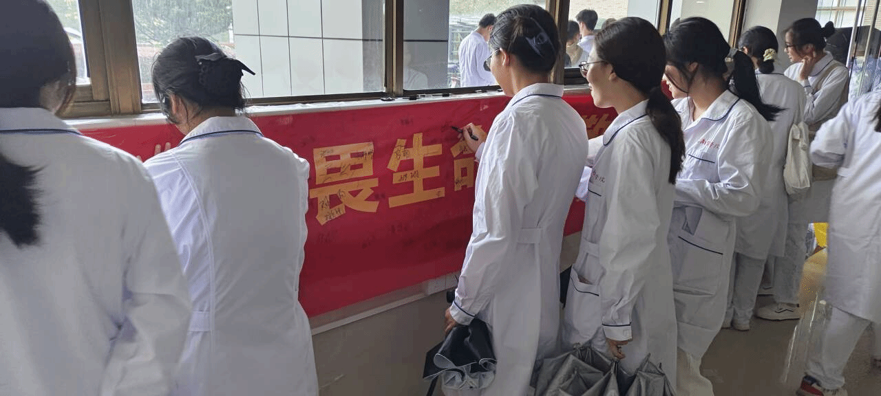 活动前夕,tyc5997太阳集团“青荷”志愿服务队员工志愿者为参与活动的员工代表进行了缅怀流程培训。活动过程共分为三个环节,首先由员工代表向各班同学作实验动物缅怀主题宣教,并播放短片“动物实验伦理及实验动物福利保障”,介绍实验动物的贡献及在医学实验教学中的作用,强调对动物伦理教育的重视。随后,员工代表带领班级同学进行集体宣誓,致敬无言的动物英雄。最后,同学们在大厅活动横幅进行签名,用笔墨寄托哀思,表达对实验动物的感恩及敬意。