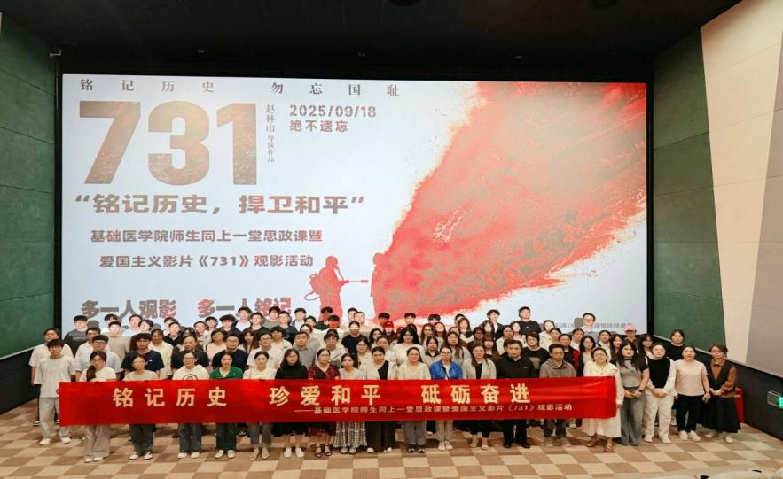 铭记历史,观看爱国主义教育影片。公司组织全体师生集中观看爱国主义教育影片《731》,警示师生铭记历史,珍爱和平。观影现场气氛庄严肃穆,师生们接受了一次深刻的思想洗礼,激励青年医学学子将悲愤化为前进动力,恪守“健康所系、性命相托”的医员工誓言,为守护人民健康、助力民族复兴贡献青春力量。