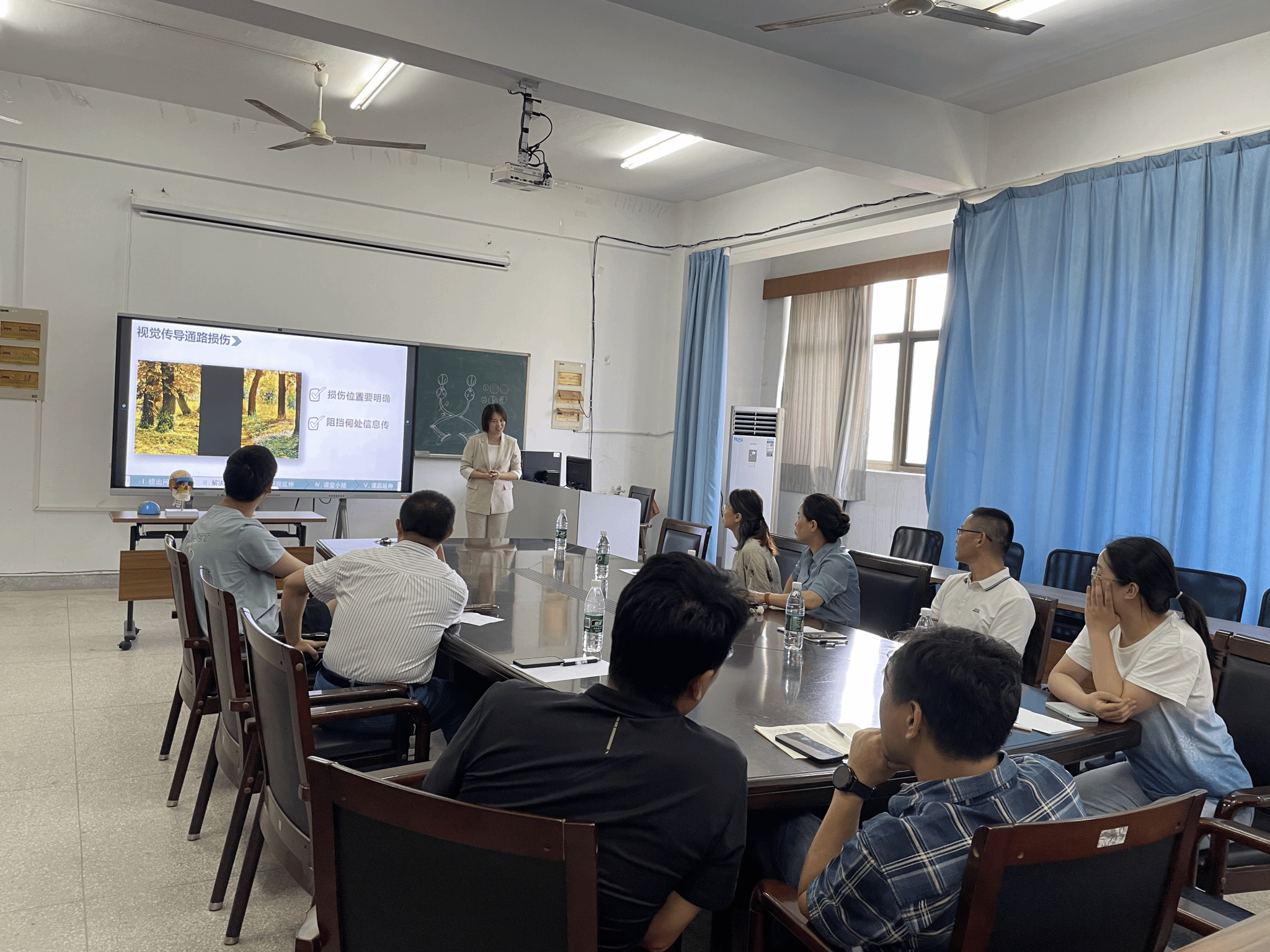 为助力公司教师备战第七届全国高校青年教师教学竞赛,8月15日下午,教务处处长黄月娥邀请tyc5997太阳集团医学微生物学与免疫学教研室刘辉教授一同前往人体解剖学教研室对参加第七届全国高校青年教师教学竞赛的产翠翠老师进行赛前指导。公司党委书记马旭明和教研室相关人员参加会议。